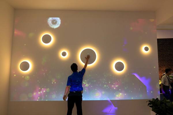 墻面互動技術(shù),可以把人體的直觀運動與墻面有機結(jié)合,創(chuàng)造全新的互動空間。它集合了豐富的效果,高清晰的視屏以及多種圖形的運用,能輕易的在任何公共區(qū)域帶來令人興奮、有趣 ……